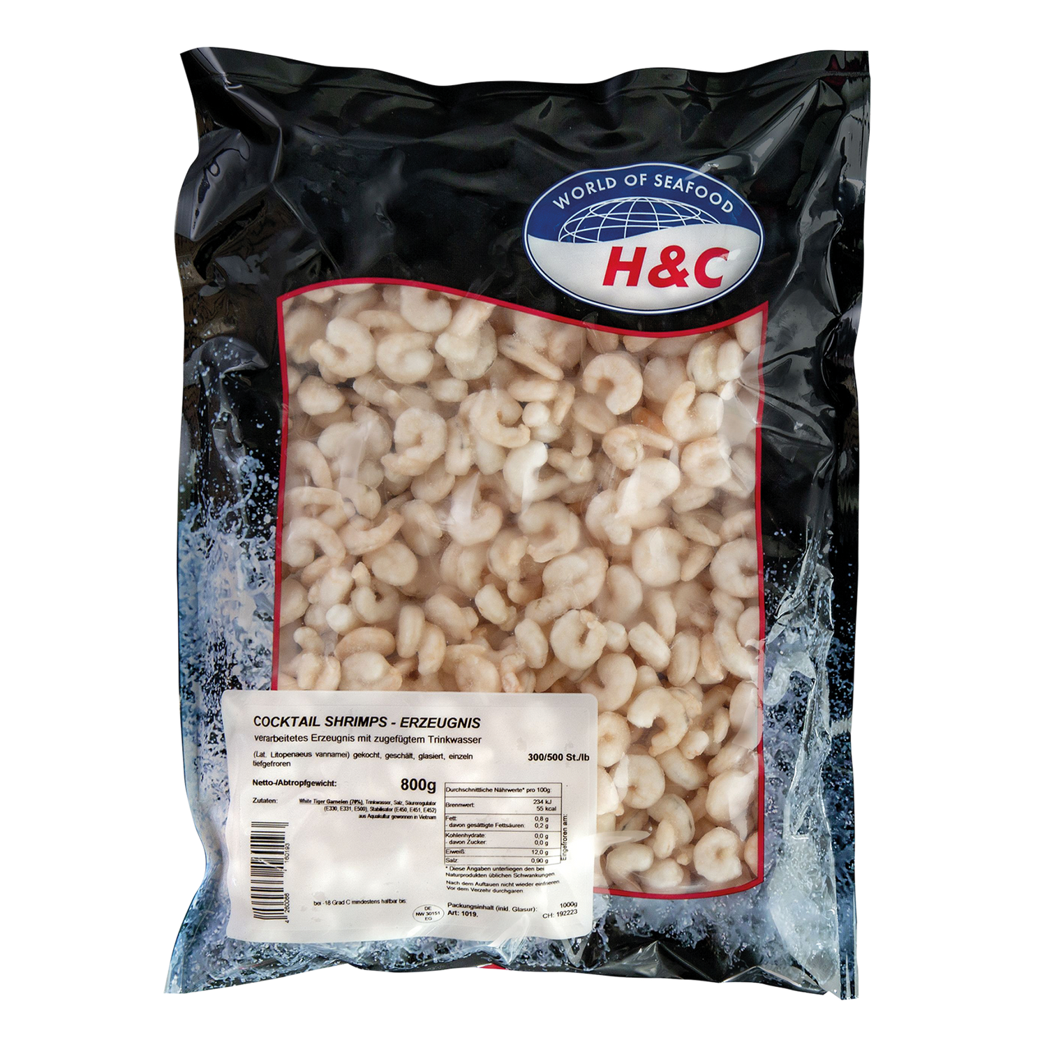 | Verkehrsbezeichnung: | Cocktail Shrimps, verarbeitetes Erzeugnis, mit zugesetztem Trinkwasser, tiefgefroren |