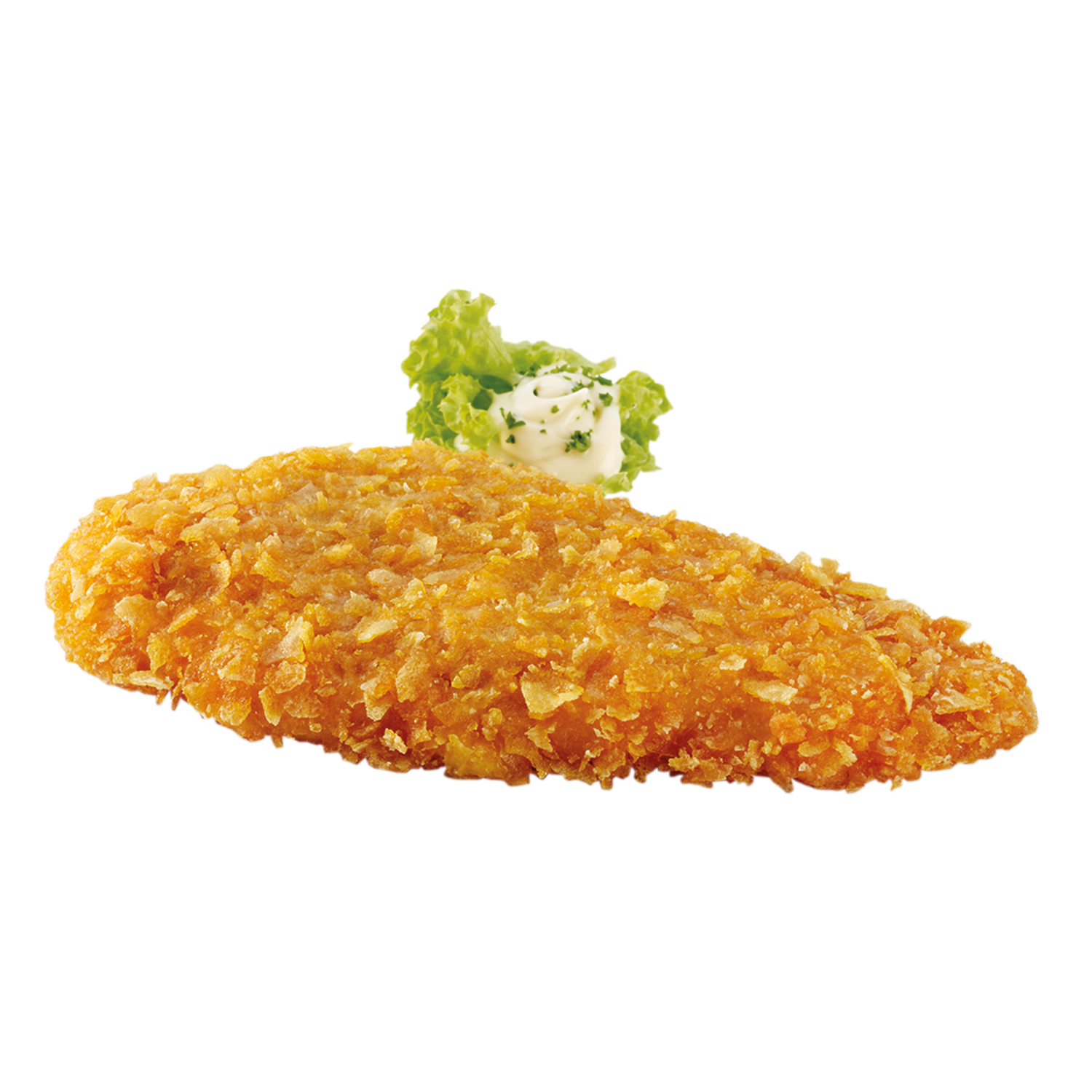 | Zutatenliste | Zutaten: Hähnchen-Brustfilet (73 %), Cornflakes-Panade (Cornflakes (Mais, Zucker, Speisesalz, GERSTENMALZEXTRAKT), Wasser, Paniermehl (WEIZENMEHL, WEIZENSTÄRKE, Speisesalz, Gewürze)), Wasser, Speisesalz, Stärke. Kann auch Spuren von MILCH, SELLERIE und SENF enthalten. |