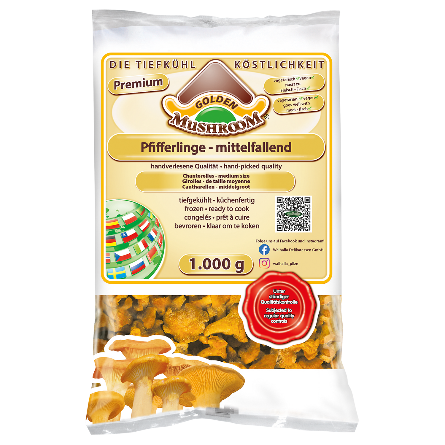 Pfifferlinge mittel TK 1Kg Walhalla - Karton à 5 BT ist auf Lager und wird versandt, sobald es wieder verfügbar ist