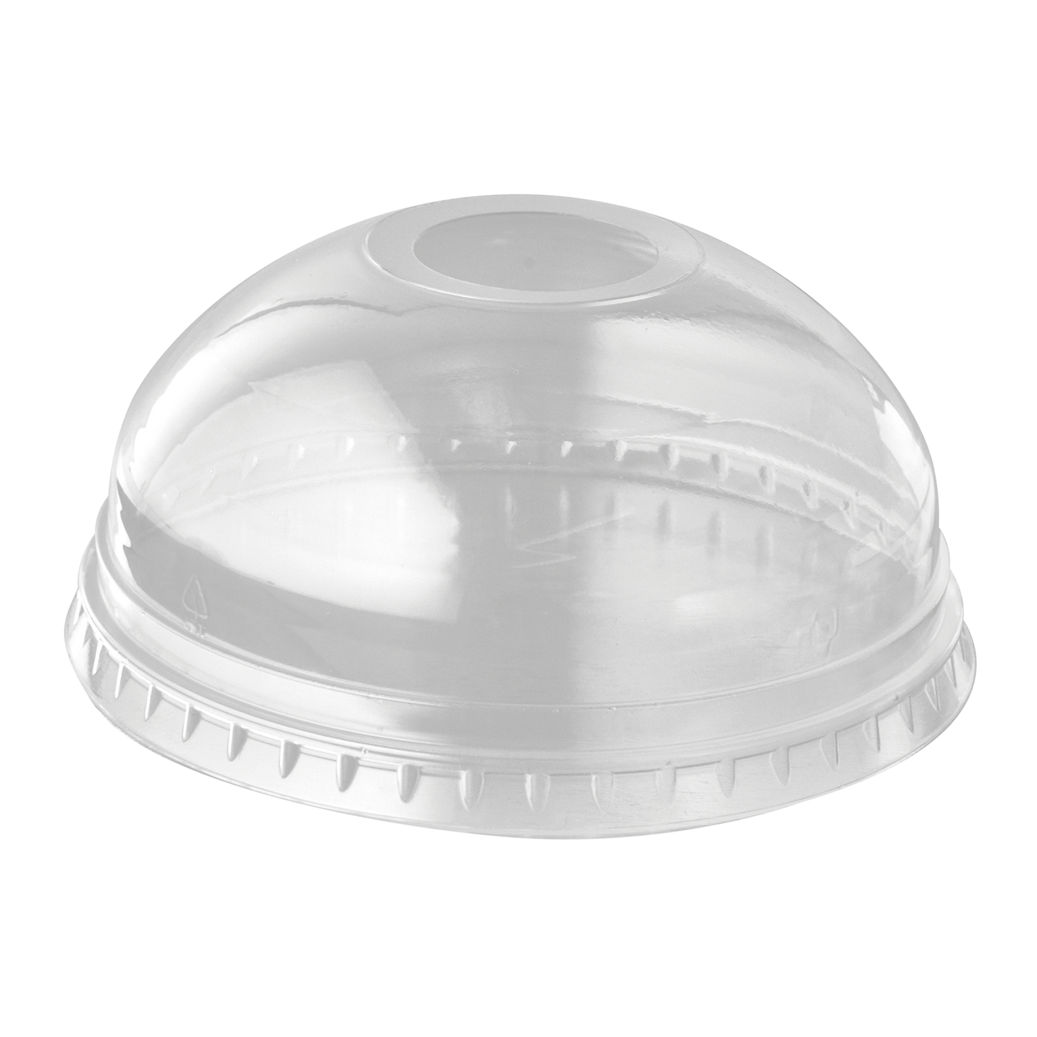 Dom-Deckel "Hurricane" aus glasklarem PET, mit Loch für Trinkhalm oder Löffel, - passend für Becher mit gleichem oberen Durchmesser ( 0,3 l, 0,4 l, 0,5 l ) - ideal für "frozen drinks", "Smoothies" und Desserts