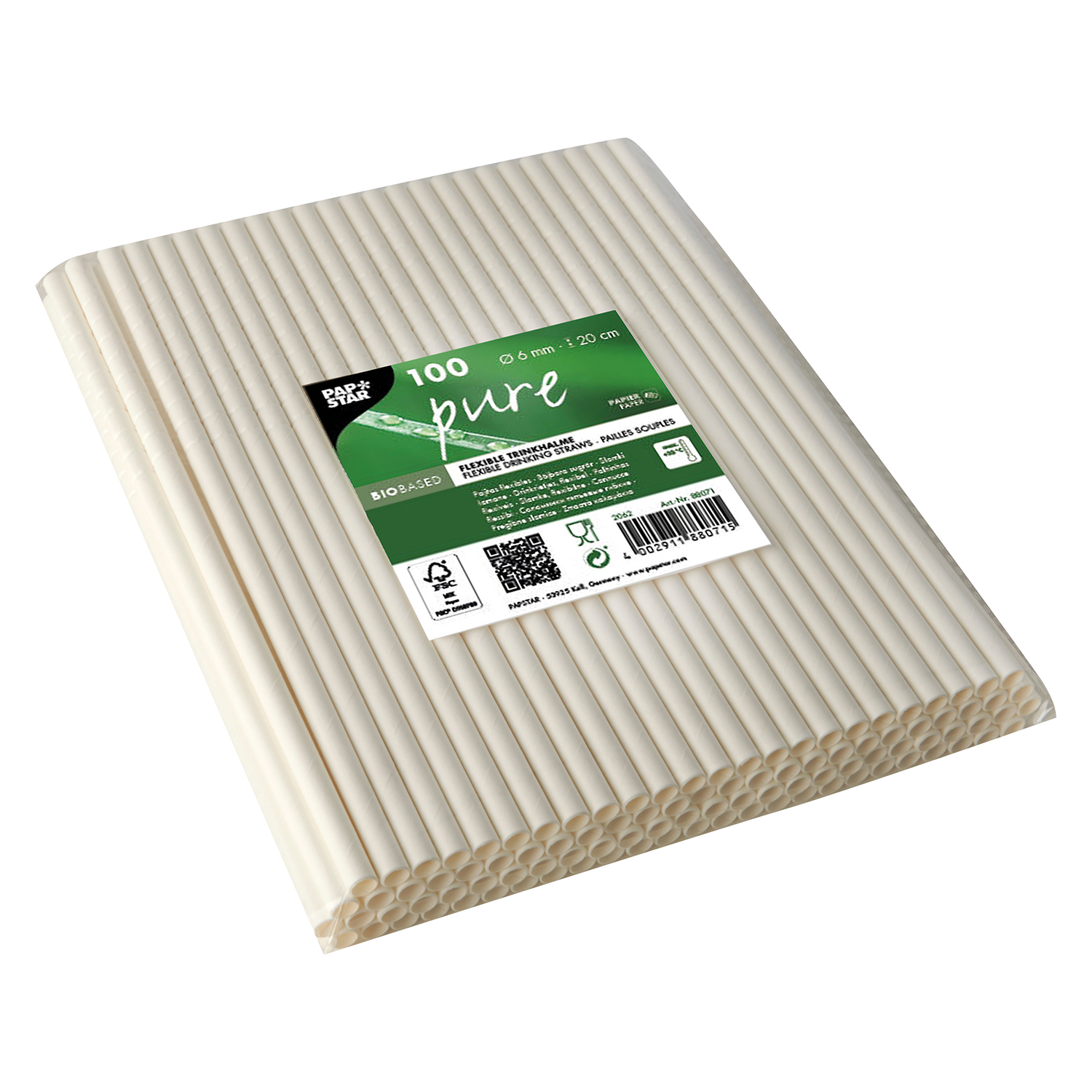 Trinkhalme weiß "pure" flexibel 6mmx20cm 100ST Papstar