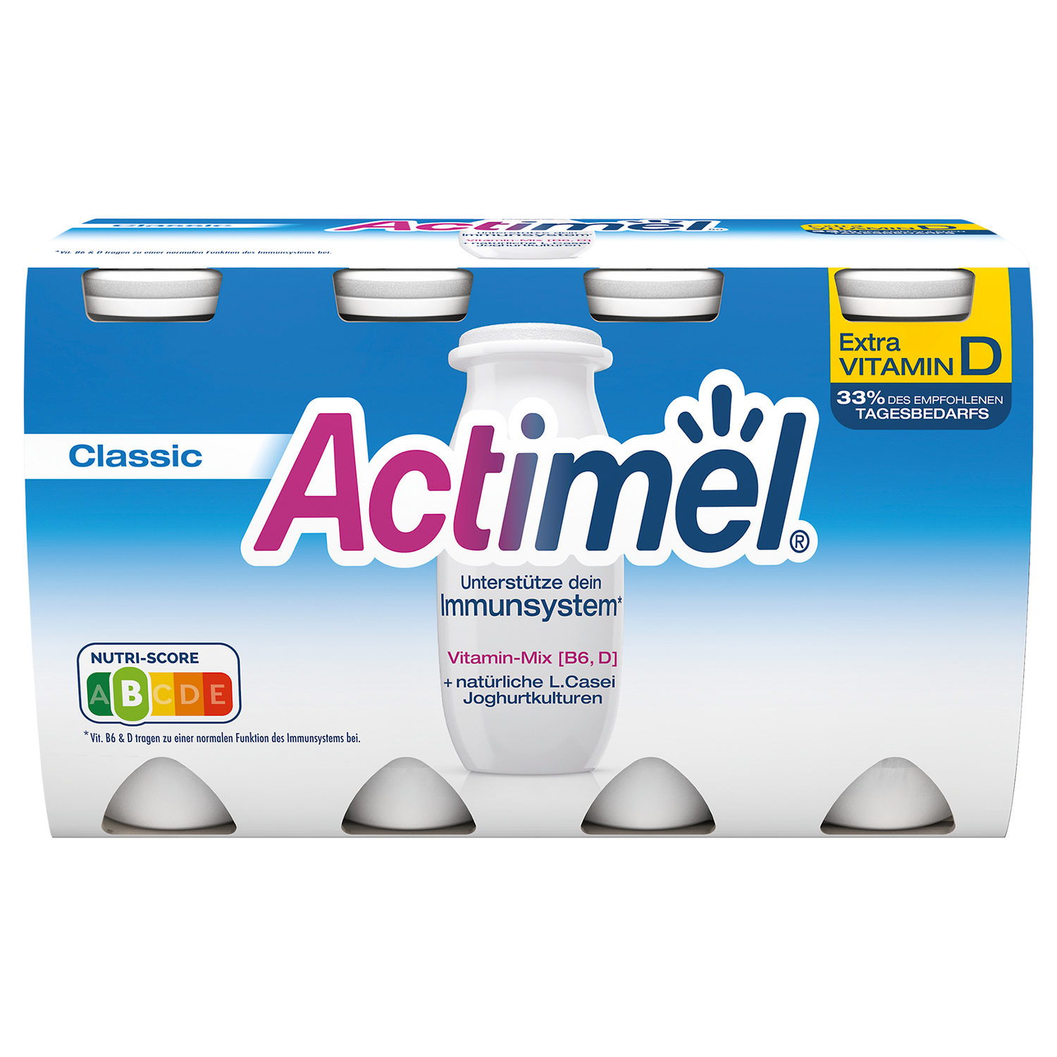 | Bei maximal +8°C mindestens haltbar bis: siehe Oberseite. Vor Gebrauch schütteln. ^Die Vitamine B6 und D tragen zu einer normalen Funktion des Immunsystems bei. Danone empfiehlt ein Fläschchen täglich. Auf die Bedeutung einer abwechslungsreichen und ausgewogenen Ernährung und einer gesunden Lebensweise wird hingewiesen. | |