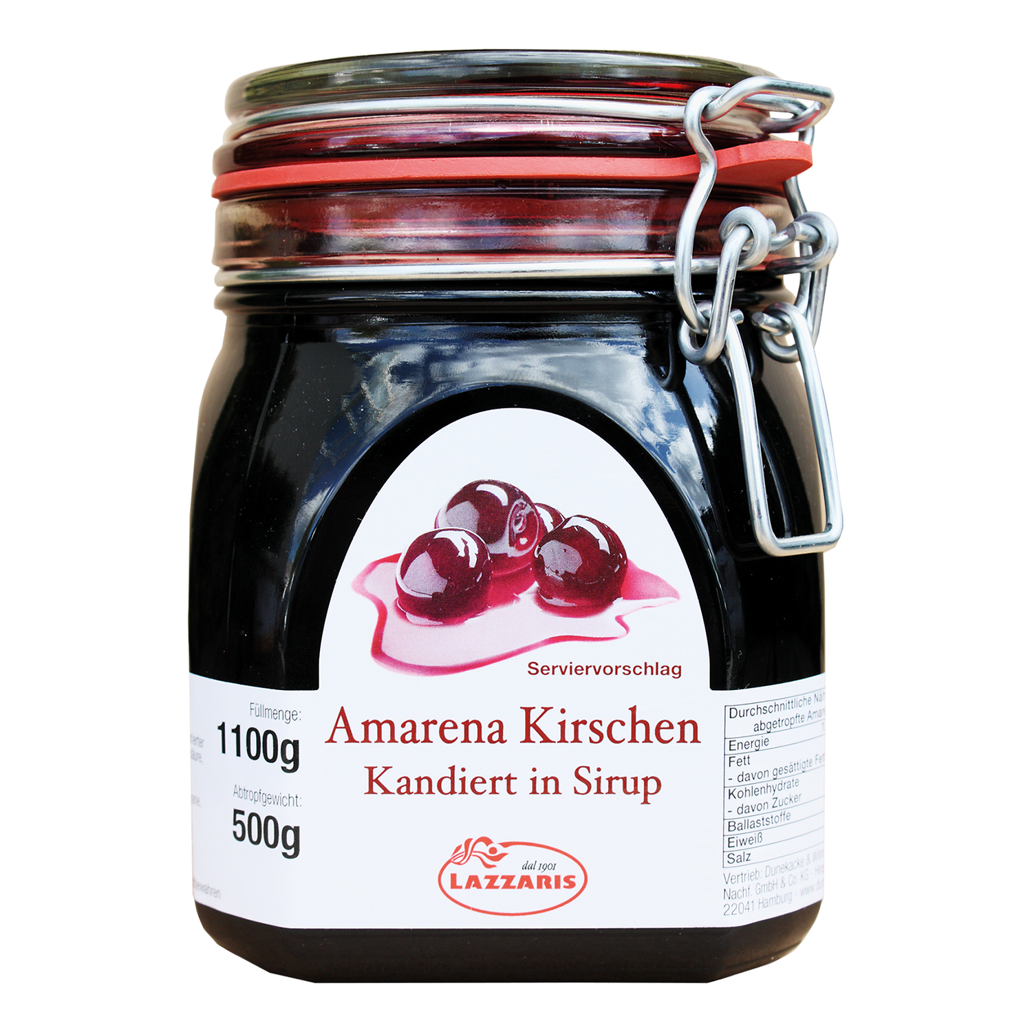 | Verkehrsbezeichnung: | Amarena-Kirschen, kandiert in Sirup |