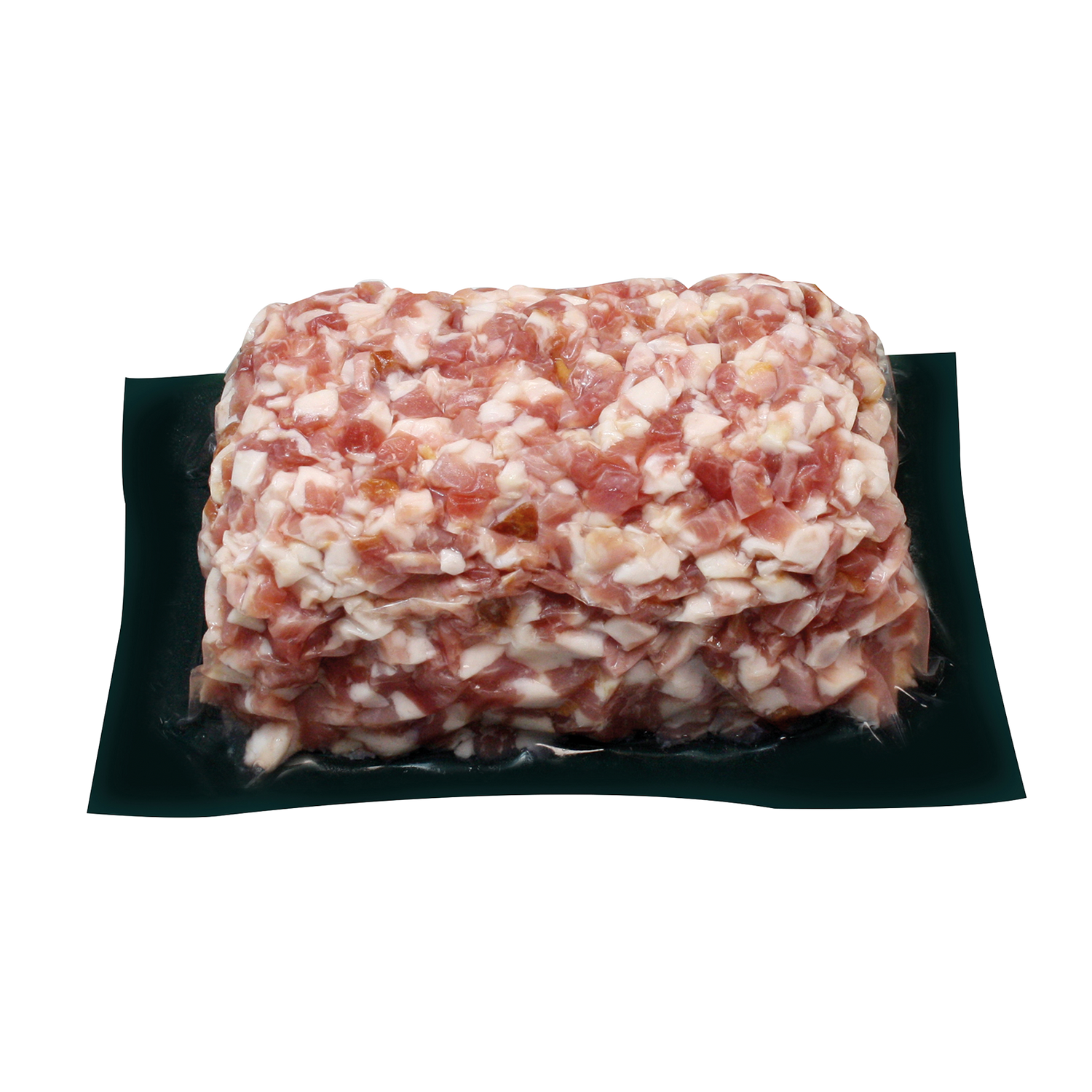 rohe, gesalzene, geräucherte Bauchwürfel, Kantenlänge 8x8x8mm