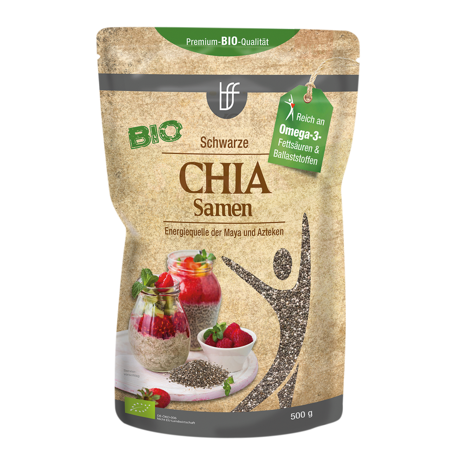 Die kleinen Samen enthalten fünfmal mehr Calcium als Milch, punkten mit einem hohen Gehalt von Antioxidantien und Omega-3-Fettsäuren. Schon vor Jahrtausenden nutzten die Azteken Chia-Samen als Grundnahrungsmittel und Heilsamen. Wegen der äußeren Polysaccharidschicht quellen die Samen in Wasser enorm auf und werden zu einem Gel, die Gewichtszunahme beträgt dabei etwa das Zehnfache. Chiasamen lässt sich auf Grund der Konsistenz im gequollenen Zustand als Ersatz von Eiklar verwenden - ein EL Chia und drei EL Wasser. Mit Joghurt und frischen Beeren vermischt als Chiapudding, oder mit reifem Obst und Vanillezucker als Marmelade sind nur zwei von tausenden Einsatzmöglichkeiten dieses Superfoods.
