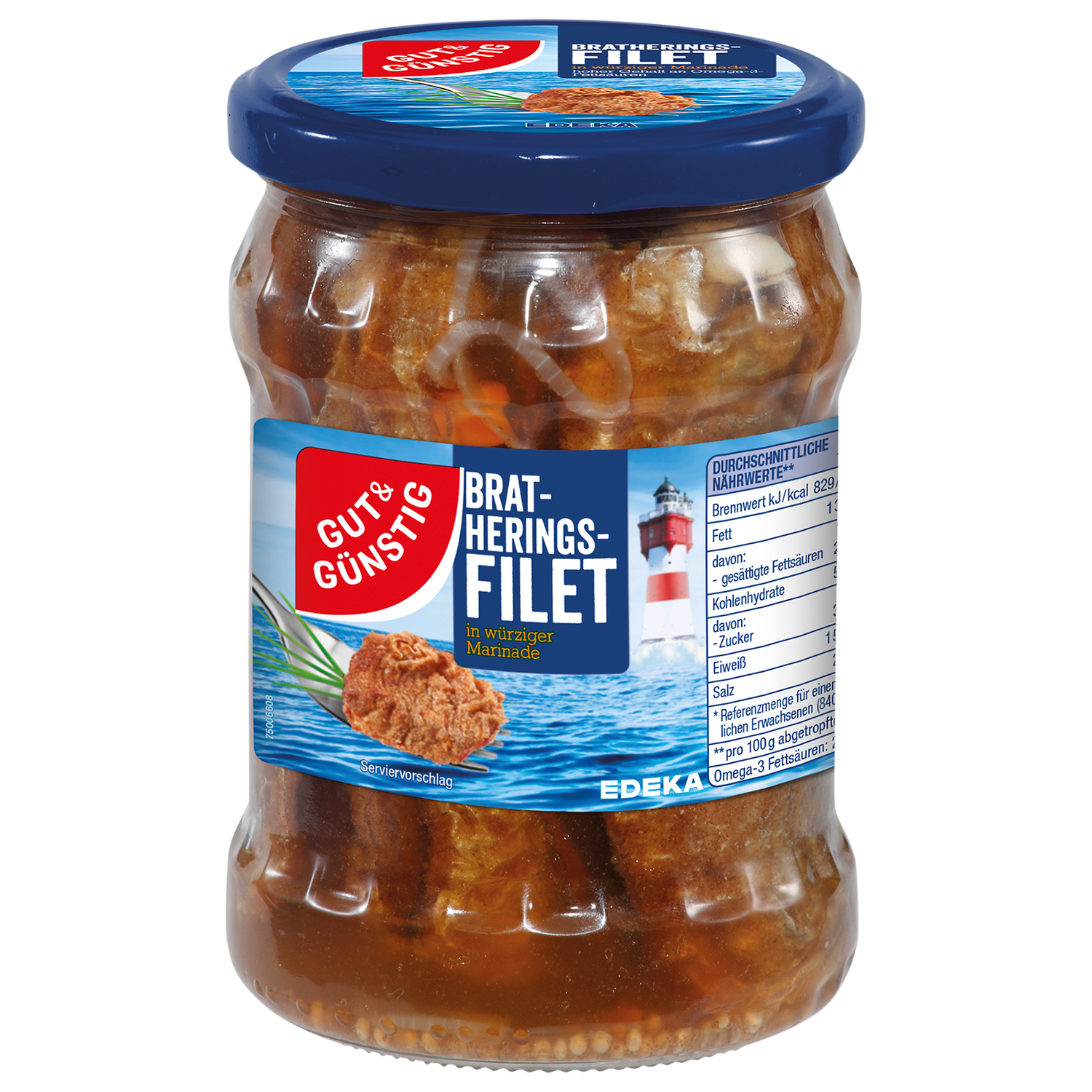 | Verkehrsbezeichnung: | Bratheringsfilet mit eingelegten Zwiebeln in würziger Marinade |