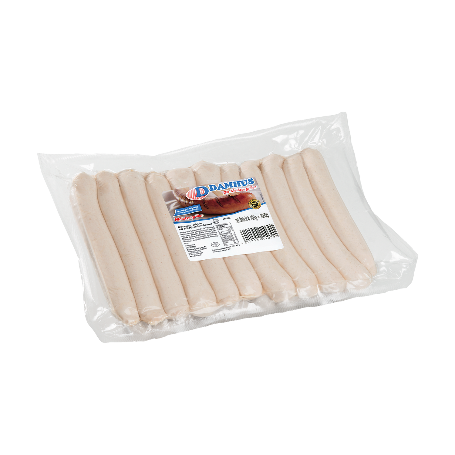 | Zutatenliste | Zutaten: Schweinefleisch (80%), Putenfleisch (5%), Speck, Trinkwasser, jodiertes Speisesalz (Speisesalz, Kaliumiodat), Gewürze (enthält SENF, SELLERIE), Würze (enthält SOJA), LAKTOSE (aus MILCH), Dextrose, Maltodextrin, Gewürzextrakte, Stabilisatoren: Diphosphate, Natriumacetate, Natriumcitrate, Geschmacksverstärker: Mononatriumglutamat, Schweinedarm |