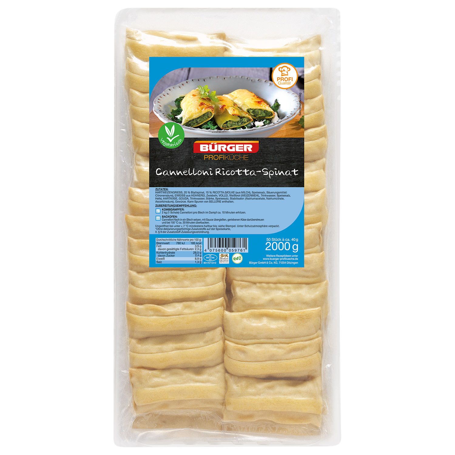 Cannelloni Ricotta-Spinatfüllung 40g/Stk. TK 2Kg Bürger - Karton à 2 BT ist auf Lager und wird versandt, sobald es wieder verfügbar ist