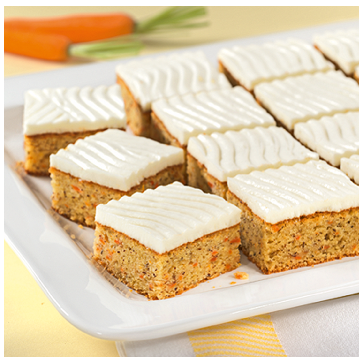 | Verkehrsbezeichnung: | Saftiger Rührkuchen mit Haselnüssen und fein geraspelten Karotten, mit einer leckeren hellen Creme überzogen und mit Karottenstückchen bestreut, fertig gebacken, geschnitten, tiefgefroren |