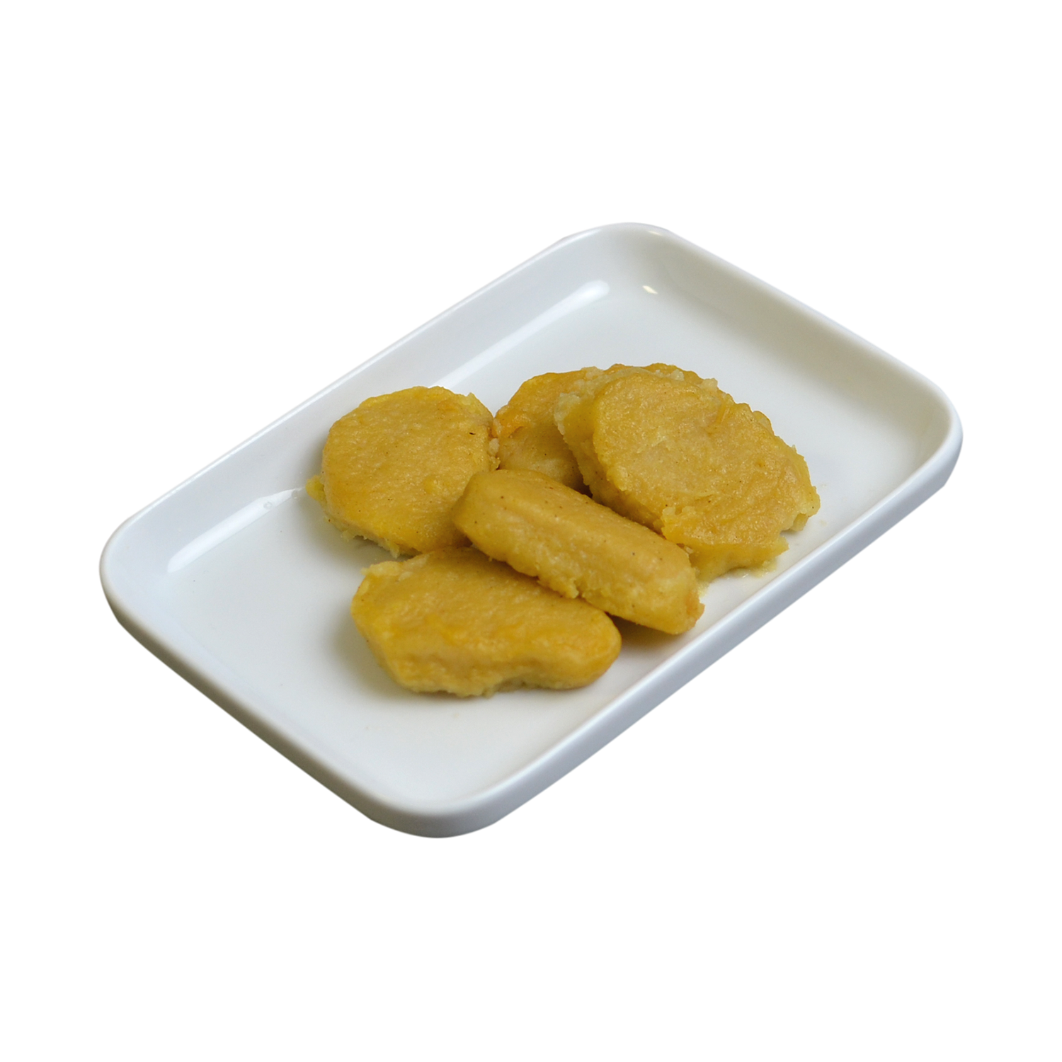 | Zutatenliste | Hähnchenfleisch fein zerkleinert 51%, Panade (Maismehl, Wasser, WEIZENMEHL, Paniermehl (WEIZENMEHL, Wasser, Hefe, Speisesalz), WEIZENGRIEß, Stärke (Mais und WEIZEN), modifizierte Kartoffelstärke, Speisesalz, Stabilisator: E450; Backtriebmittel: E500; Gewürze, Sonnenblumenöl), Rapsöl, Wasser, Kartoffelstärke, Speisesalz, Glukosesirup, Gewürze. |