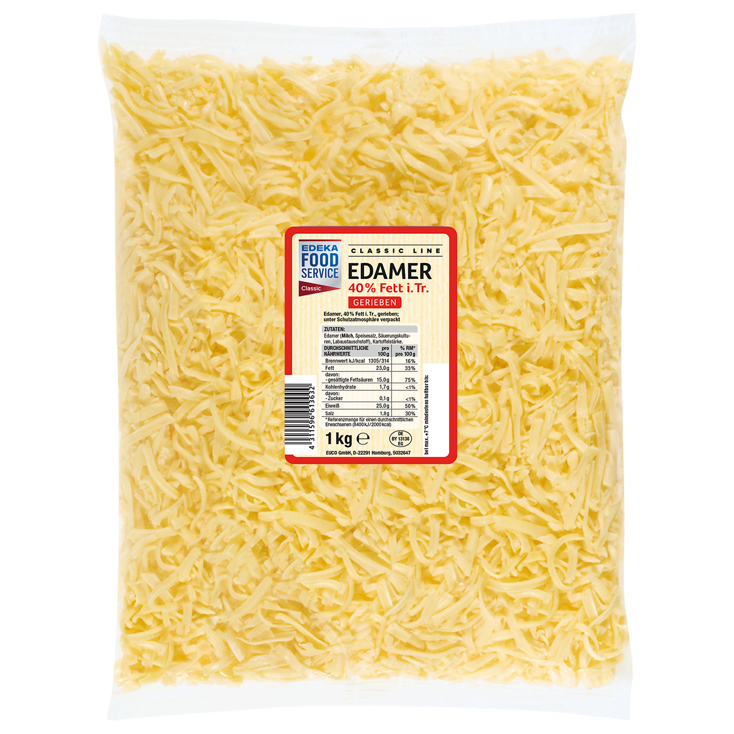 | Verkehrsbezeichnung: | Edamer, 40 % Fett i. Tr., gerieben |