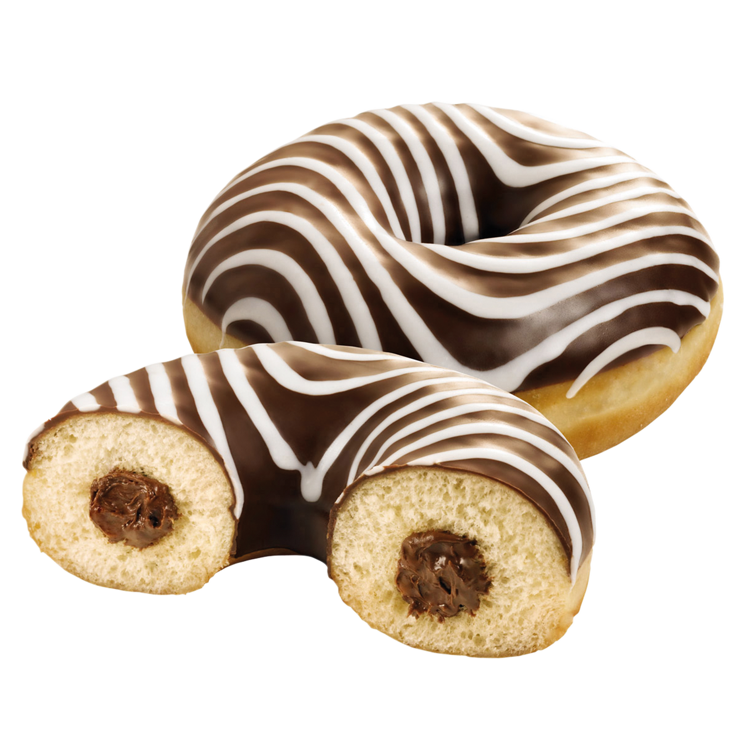 | Verkehrsbezeichnung: | Donut mit Kakaokrem (27%), kakaohaltiger Fettglasur (9,3%) und weißen Glasurstreifen (4%), tiefgefroren |