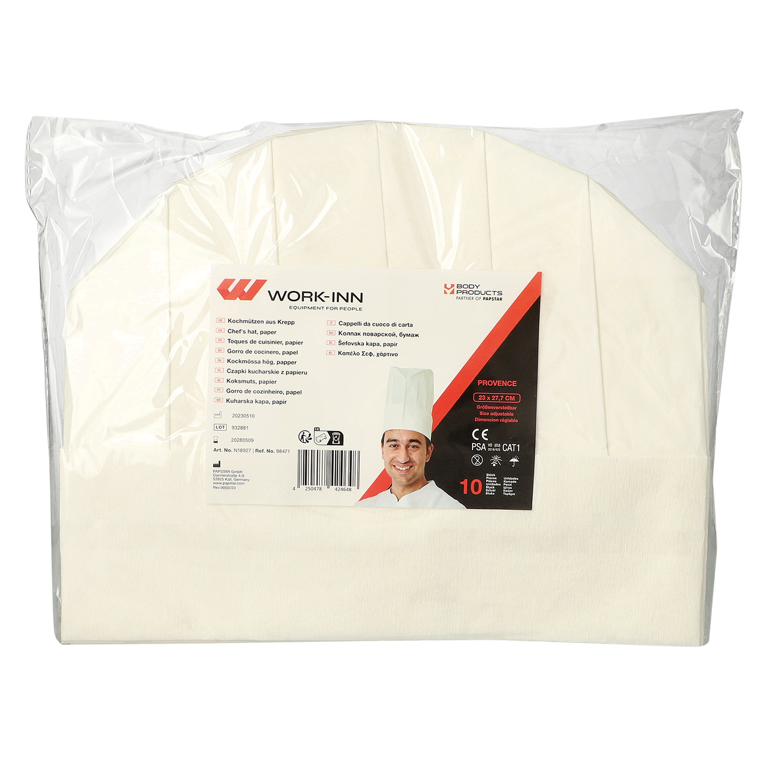 Kochmütze aus Krepp weiss 10 Stück Papstar