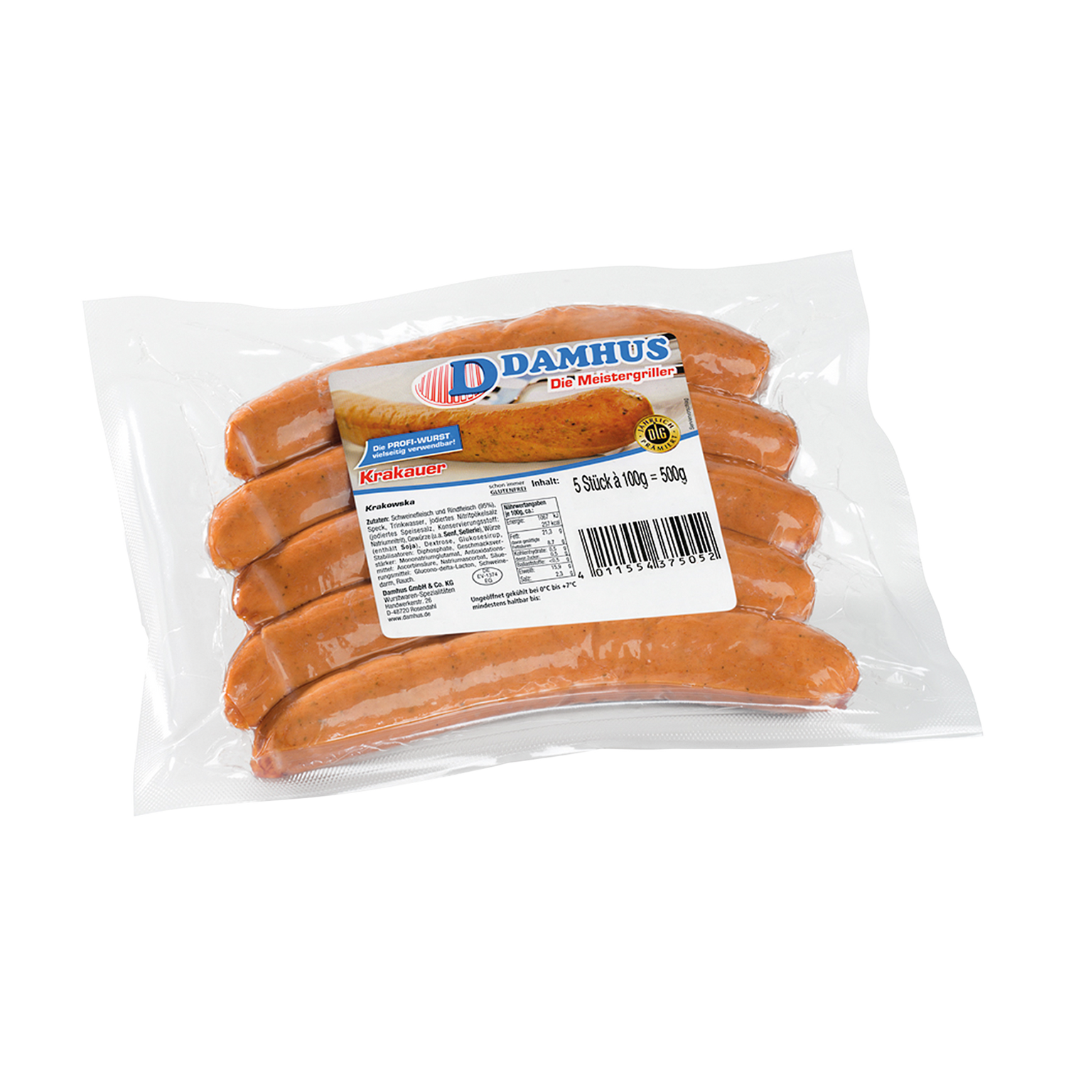 Krakauer(Schwein&Rind)Naturdarm 5 Stück à 100g - Packung ist auf Lager und wird versandt, sobald es wieder verfügbar ist