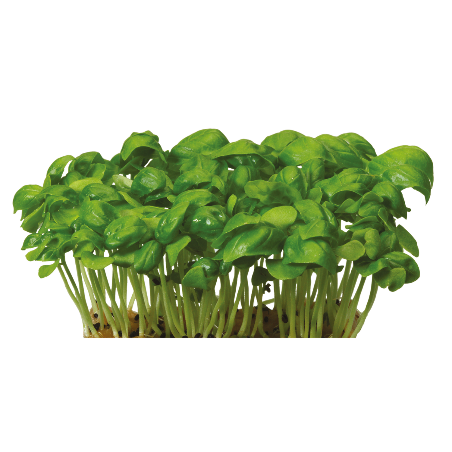Basilikum Cress ist eine kräftige, frische Basilikumkresse mit milden Nelkenaromen. Dank ihres jungen Blatts lässt sich die Kresse als Ganzes verwenden.