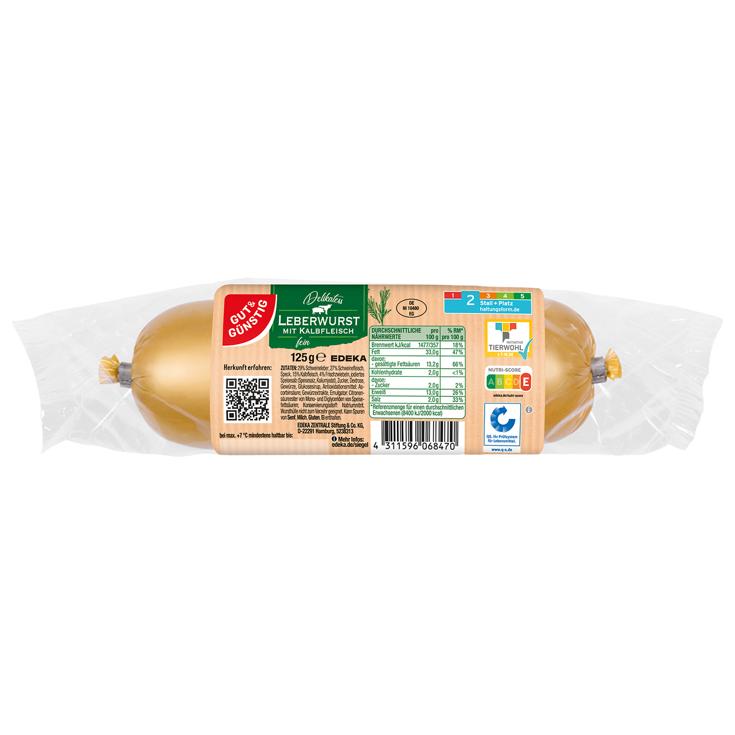 | Verkehrsbezeichnung: | Delikatess Leberwurst mit Kalbfleisch |