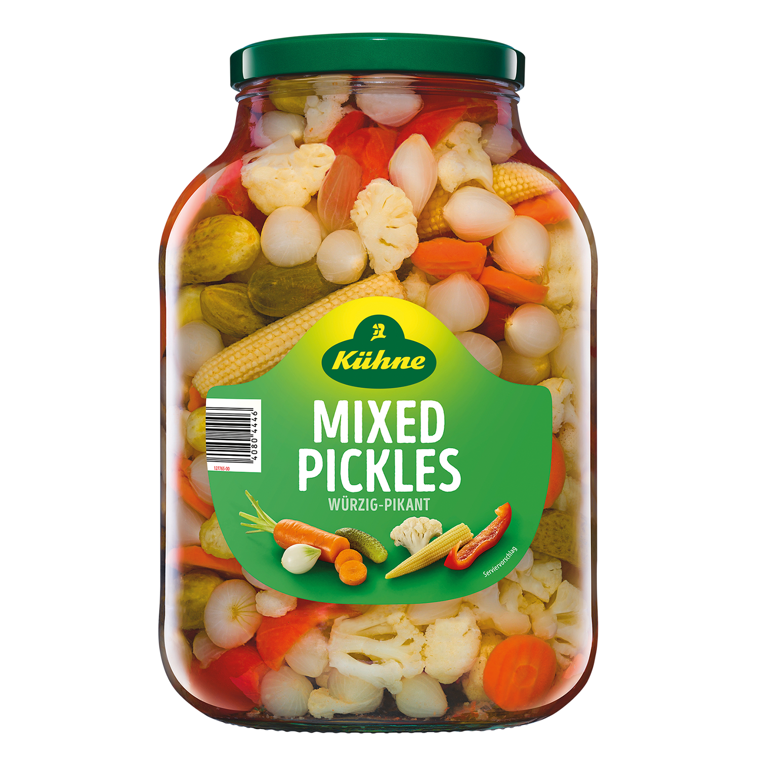 | Zutatenliste | Zutaten: Gemüse in veränderlichen Gewichtsanteilen (Gurken, Blumenkohl, Zwiebeln, Paprika, Karotten, Maiskölbchen), Branntweinessig, Zucker, Salz, natürliches Aroma |