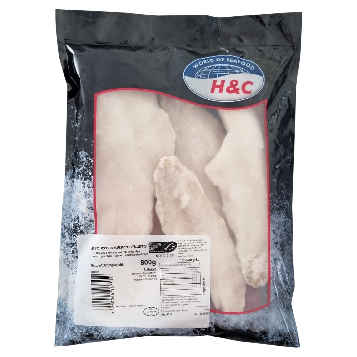 MSC Rotbarsch Filets 170/230 TK roh, o.Haut, glasiert 800g - Karton à 10 BT ist auf Lager und wird versandt, sobald es wieder verfügbar ist