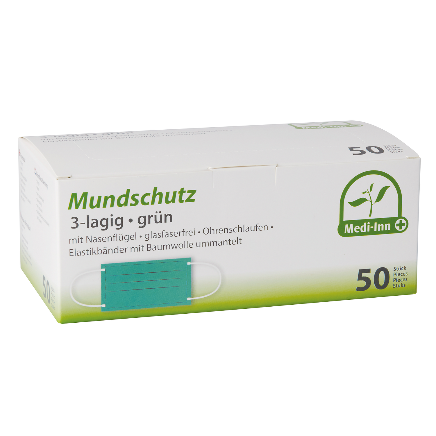Mundschutz 3lagig Grün 50st Papstar