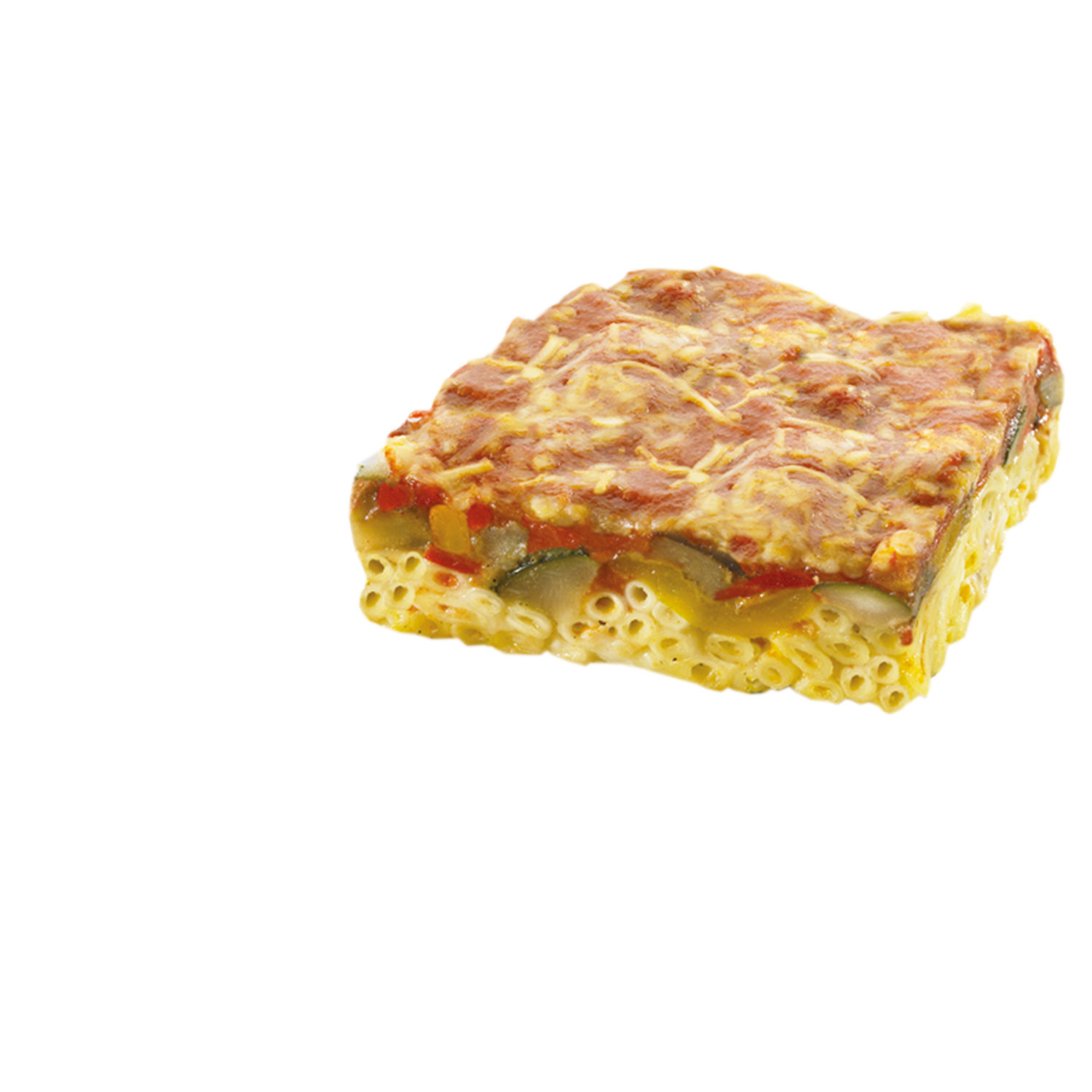 | Verkehrsbezeichnung: | Auflauf mit gegarten Nudeln, Grillgemüse in Tomatensauce, mit Käse abgestreut, tiefgekühlt |