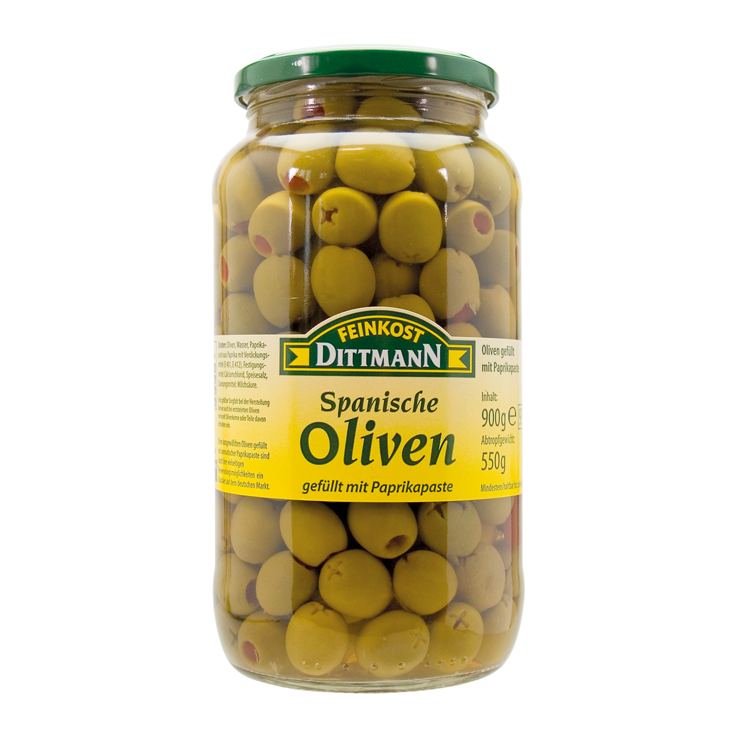Oliven grün mit Paprika-Paste 900g/550g Dittmann