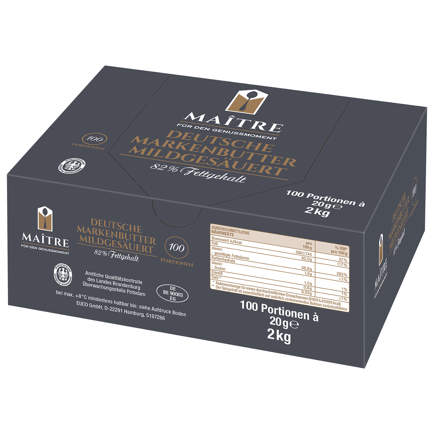 Portionsbutter 100x20gr Maitre - Karton ist auf Lager und wird versandt, sobald es wieder verfügbar ist