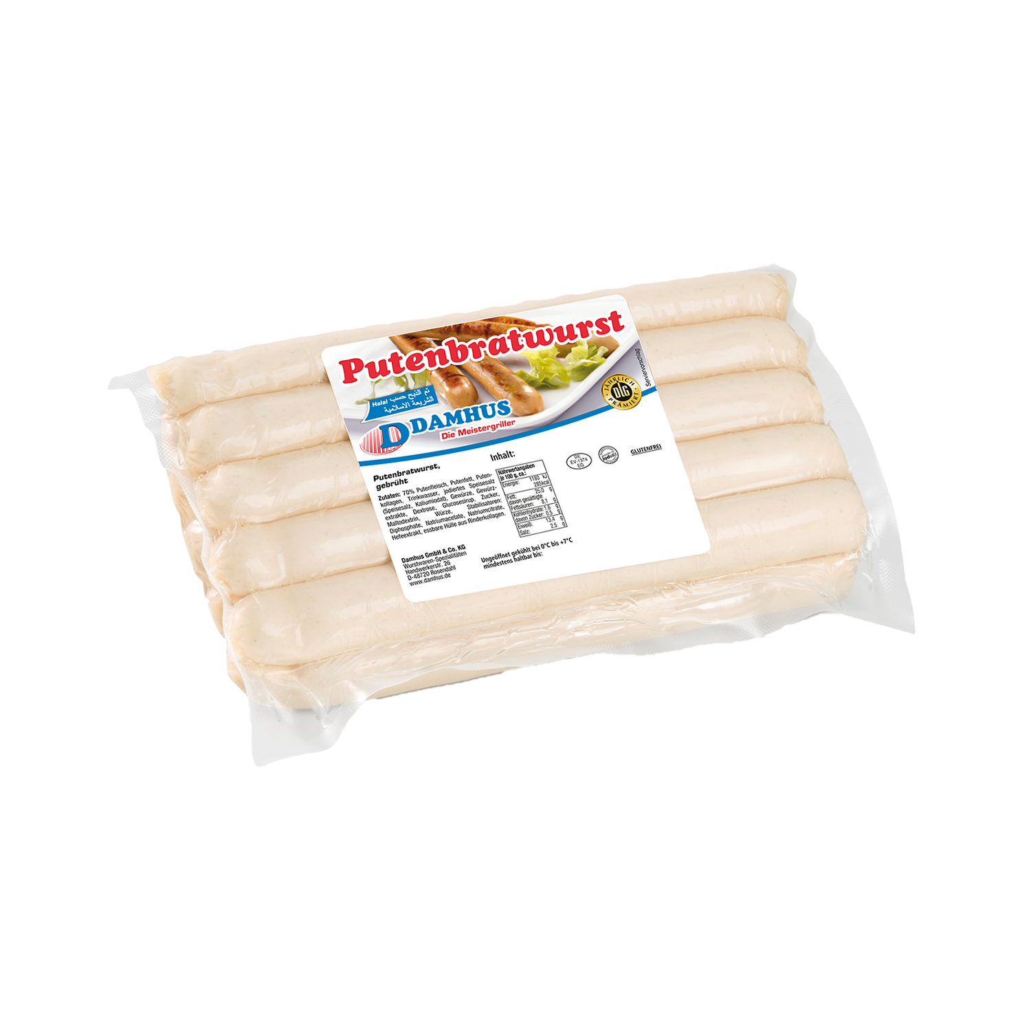 Putenbratwurst Kal.23 10 Stück à 100g Damhus - Packung ist auf Lager und wird versandt, sobald es wieder verfügbar ist
