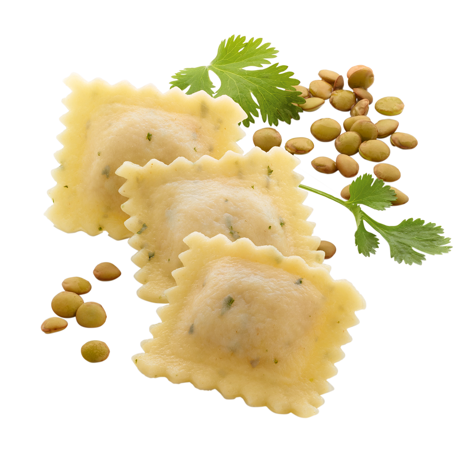 | Verkehrsbezeichnung: | Petersilie-Teigwaren mit Gemüse 8 %, Kichererbsen und Mungbohnen (Füllung 34 %), vorgekocht, tiefgekühlt |