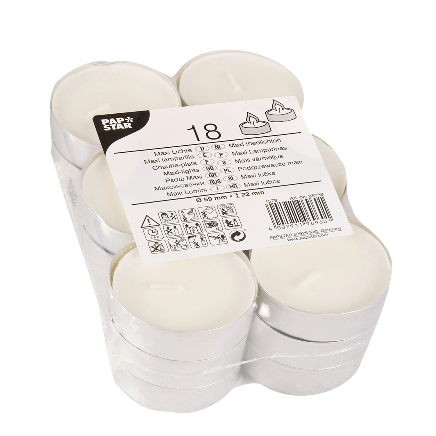 Teelichter Maxi weiss Ø 57mm · 22mm 18 Stück PapStar