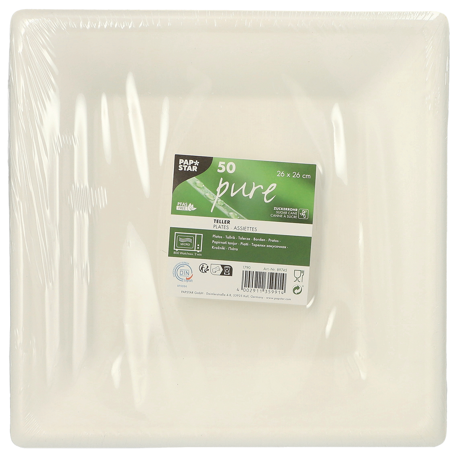 Teller Zuckerrohr Pure 26x26cm weiß 50 Stück Papstar