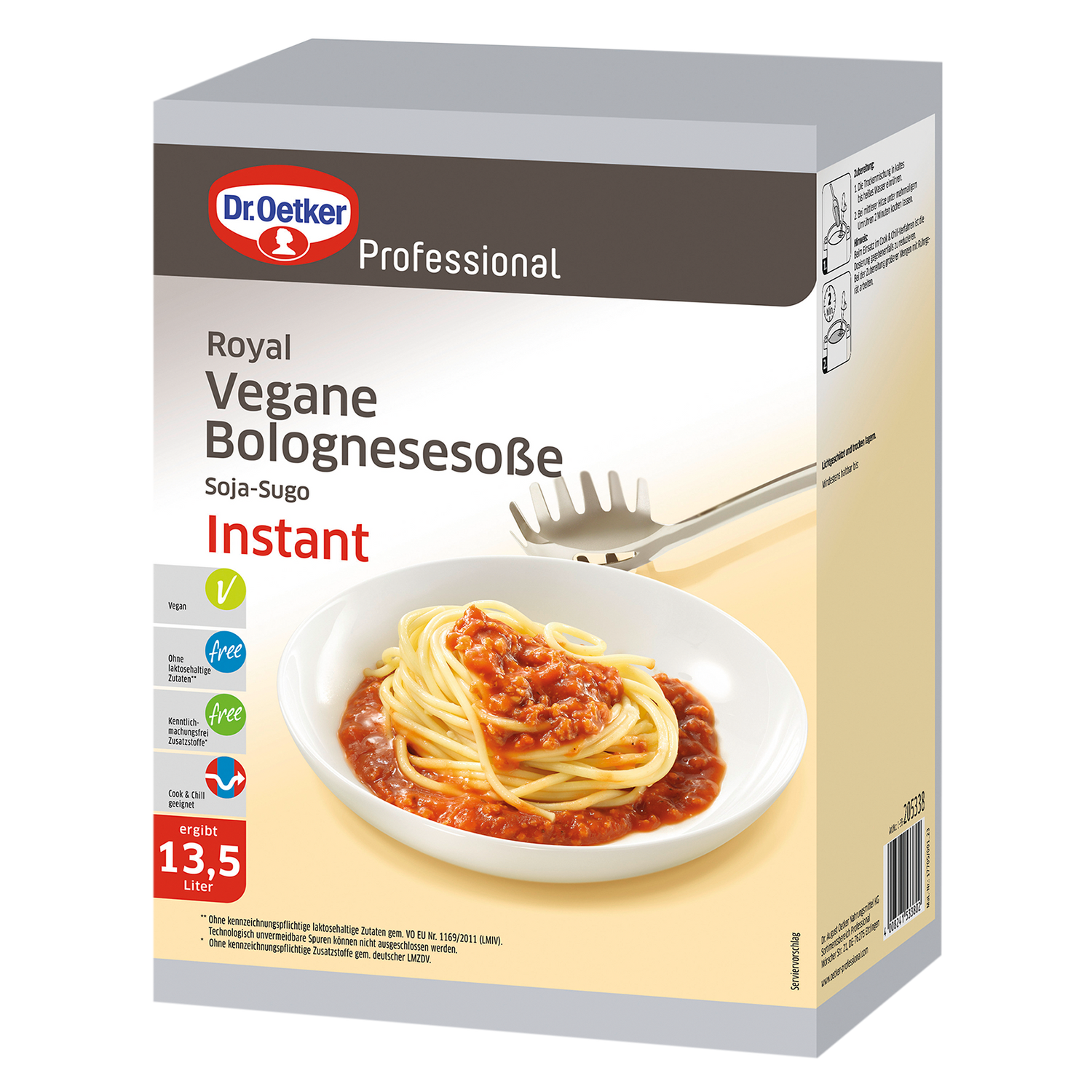 | Verkehrsbezeichnung: | Vegane Bolognesesoße Soja-Sugo Instant |
