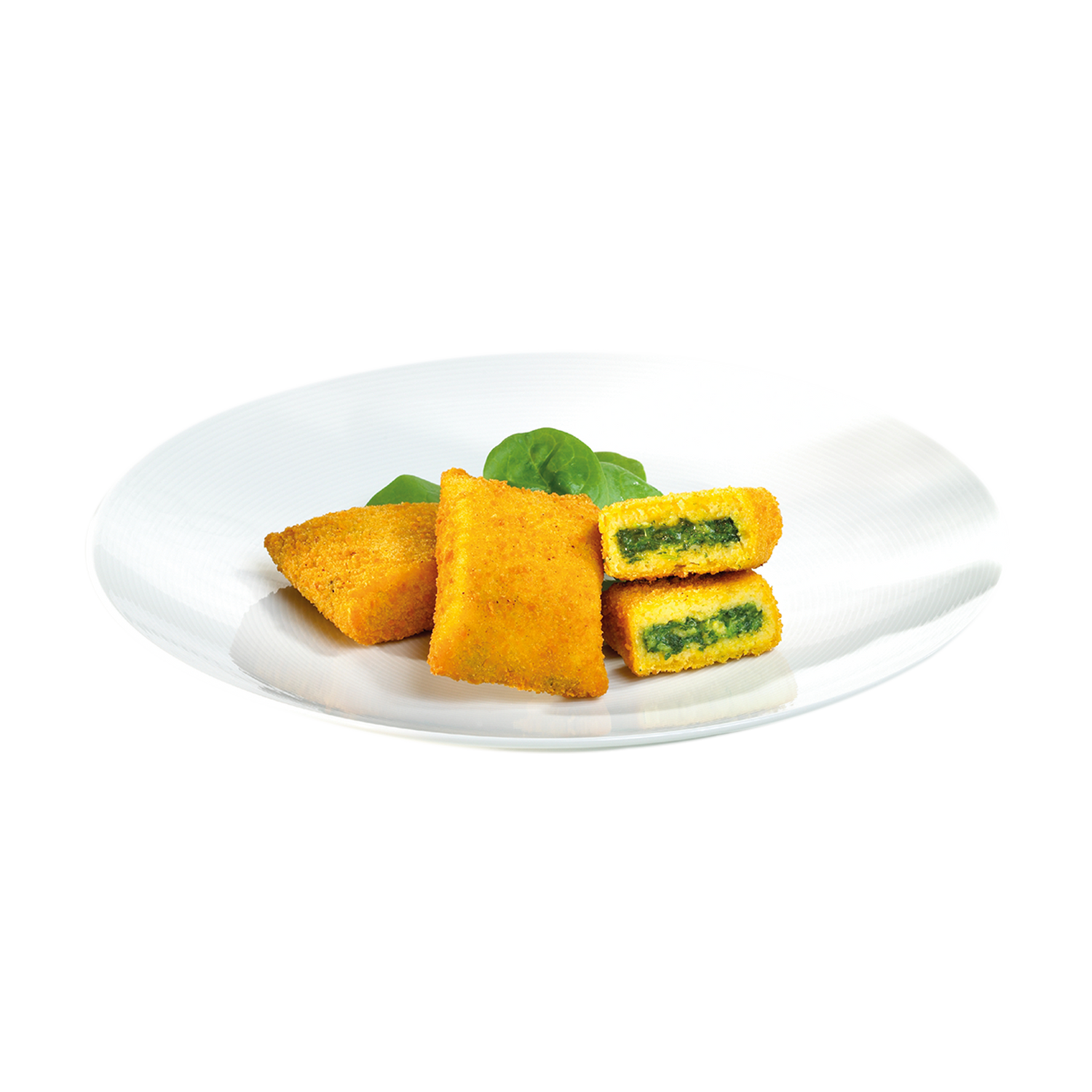 | Verkehrsbezeichnung: | Polenta-Spinat-Knuspertasche , vegetarische Maisgrieß-Tasche mit einer Spinatfüllung, küchenfertig gewürzt, geformt, paniert, vorfrittiert, tiefgefroren |