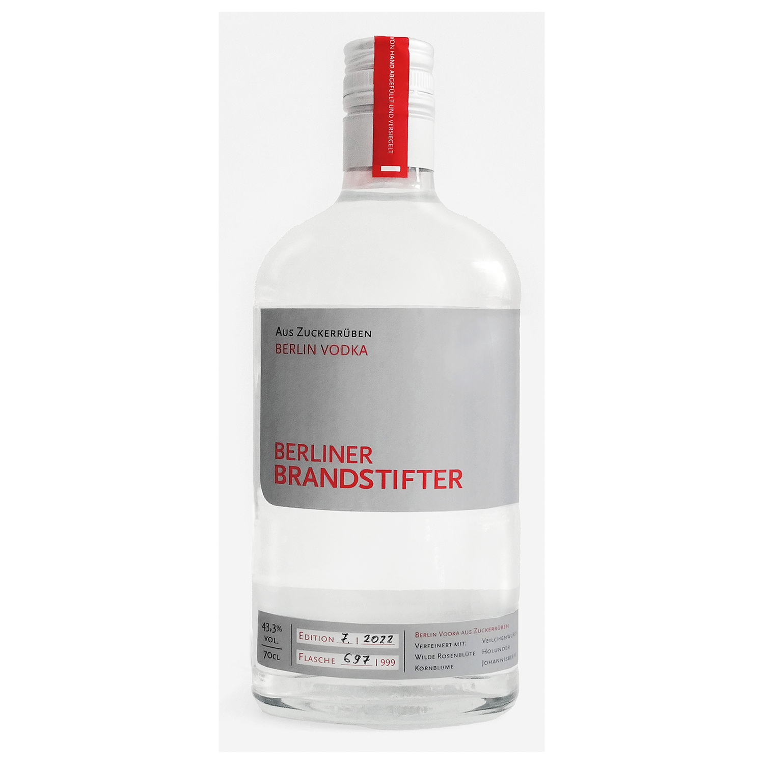 | Verkehrsbezeichnung: | Berliner Brandstifter Berlin Vodka 43.3% Vol. 0,7l Hergestellt in Berlin |