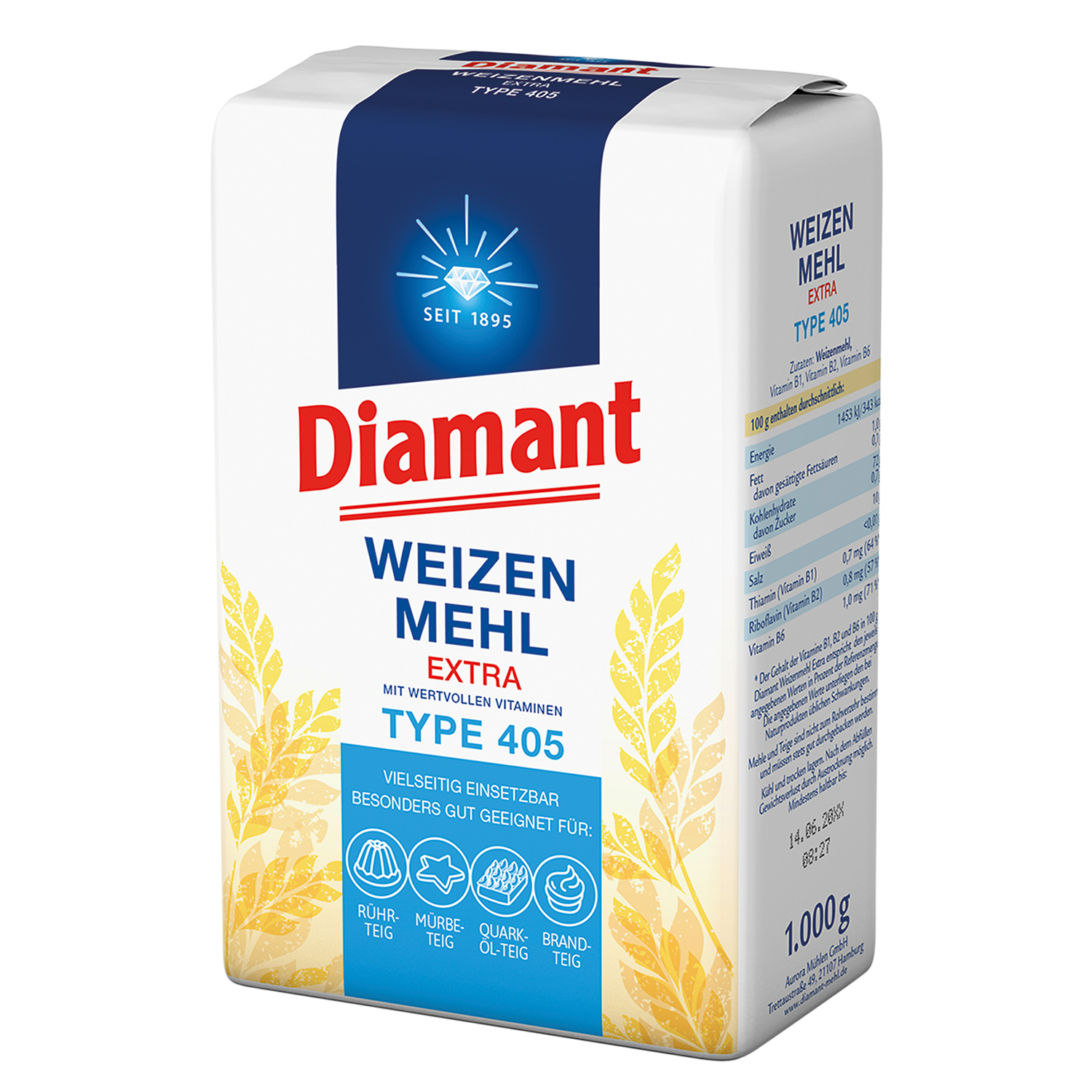 Weizenmehl Extra Type 405 1kg Diamant - Karton à 10 PK ist auf Lager und wird versandt, sobald es wieder verfügbar ist