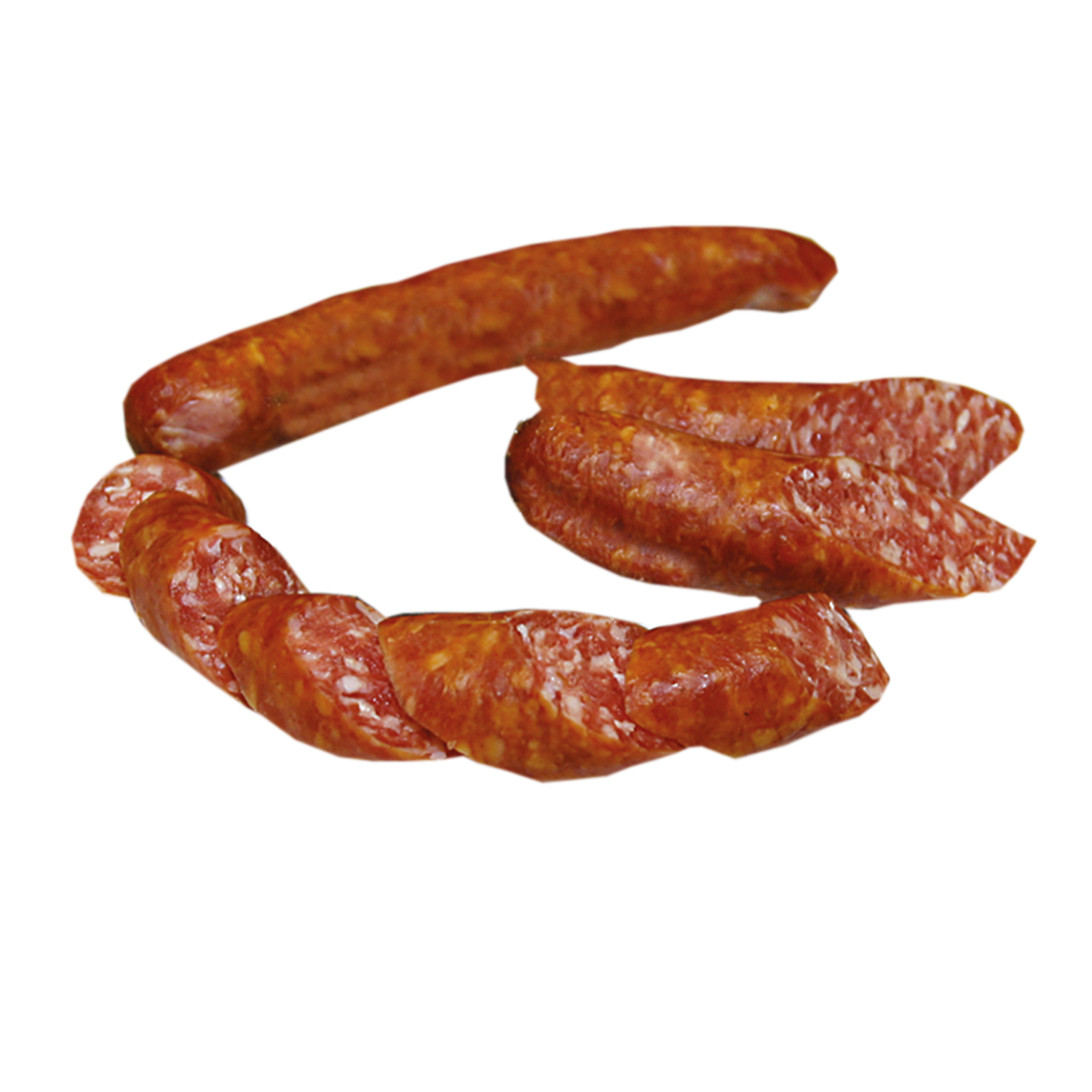 | Zutatenliste | Zutaten: Schweinefleisch 95%, Zwiebeln, Nitritpökelsalz (Speisesalz, Konservierungsstoff E250), Dextrose, Gewürze, Speisesalz, Gewürzextrakte, Glukosesirup, Antioxidationsmittel: (E301, E300), Invertzuckersirup, Trinkwasser, Säuerungsmittel: (E330,E270), Gewürzextrakte, Saccharose, Reifekulturen, Schweinedarm, Buchenholzrauch. |