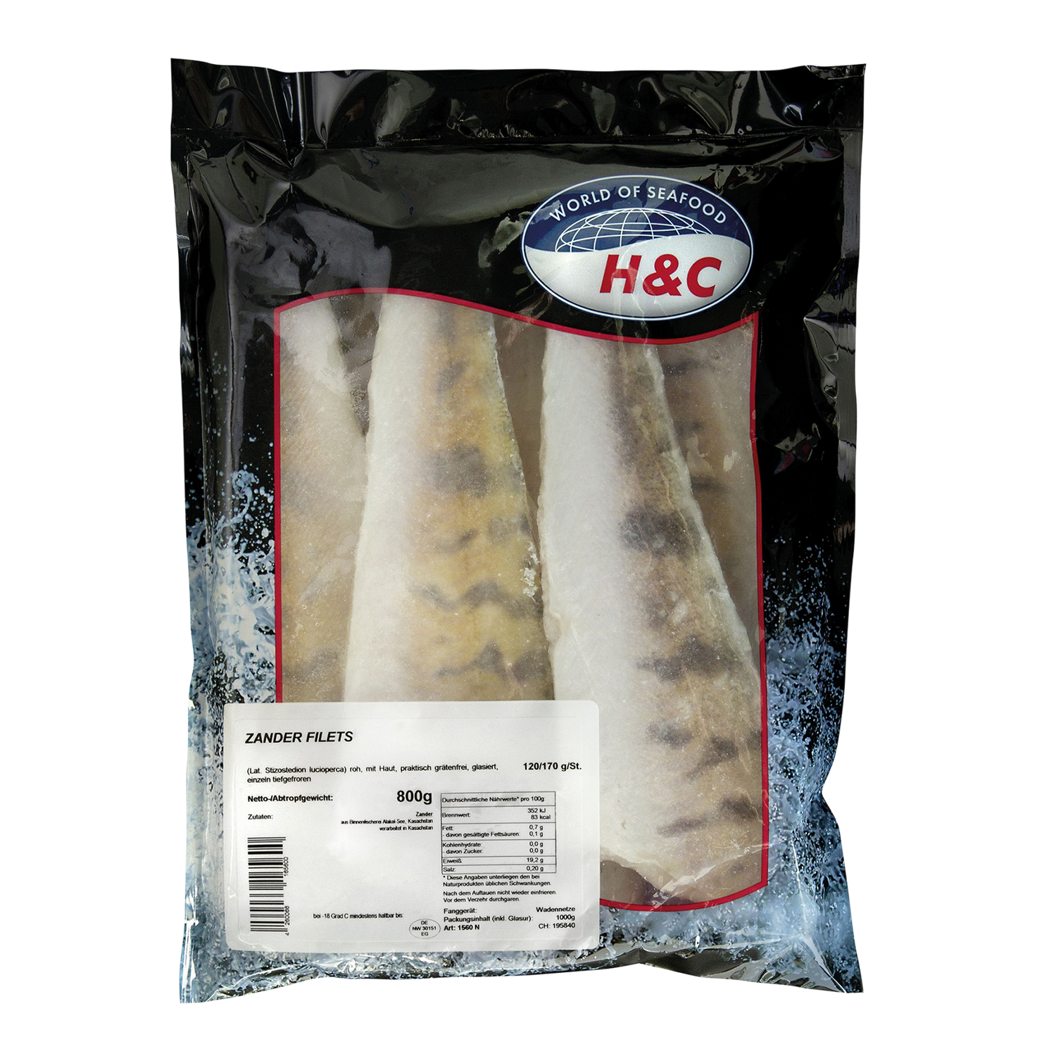Zanderfilets 120-170g TK roh, mit Haut, glasiert 800g
